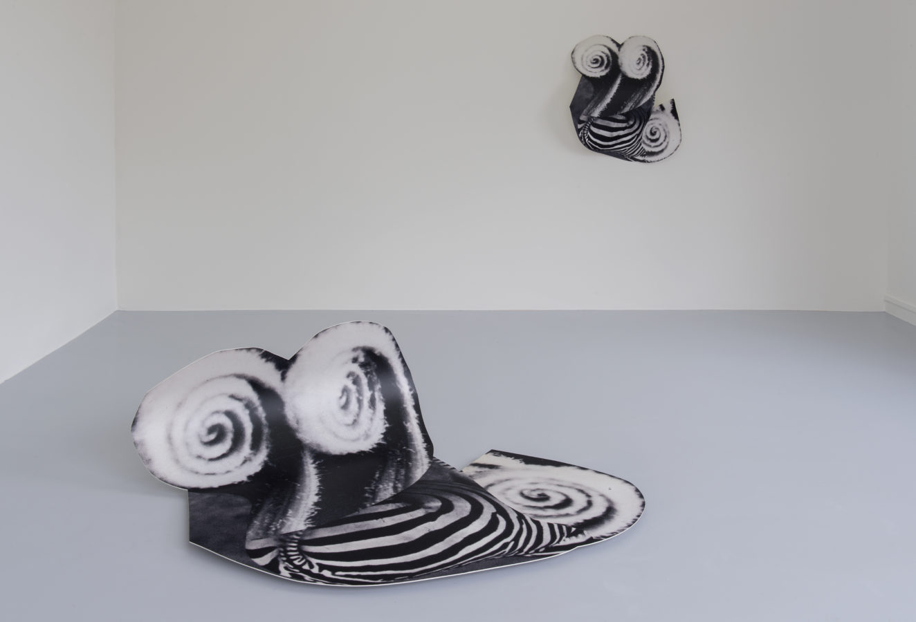 - Z et z, 2019, impression jet d’encre sur vinyle, aluminium découpé et roulé, peinture thermolaquée, 166 x 144 x 55 cm et 93 x 86 x 20 cm