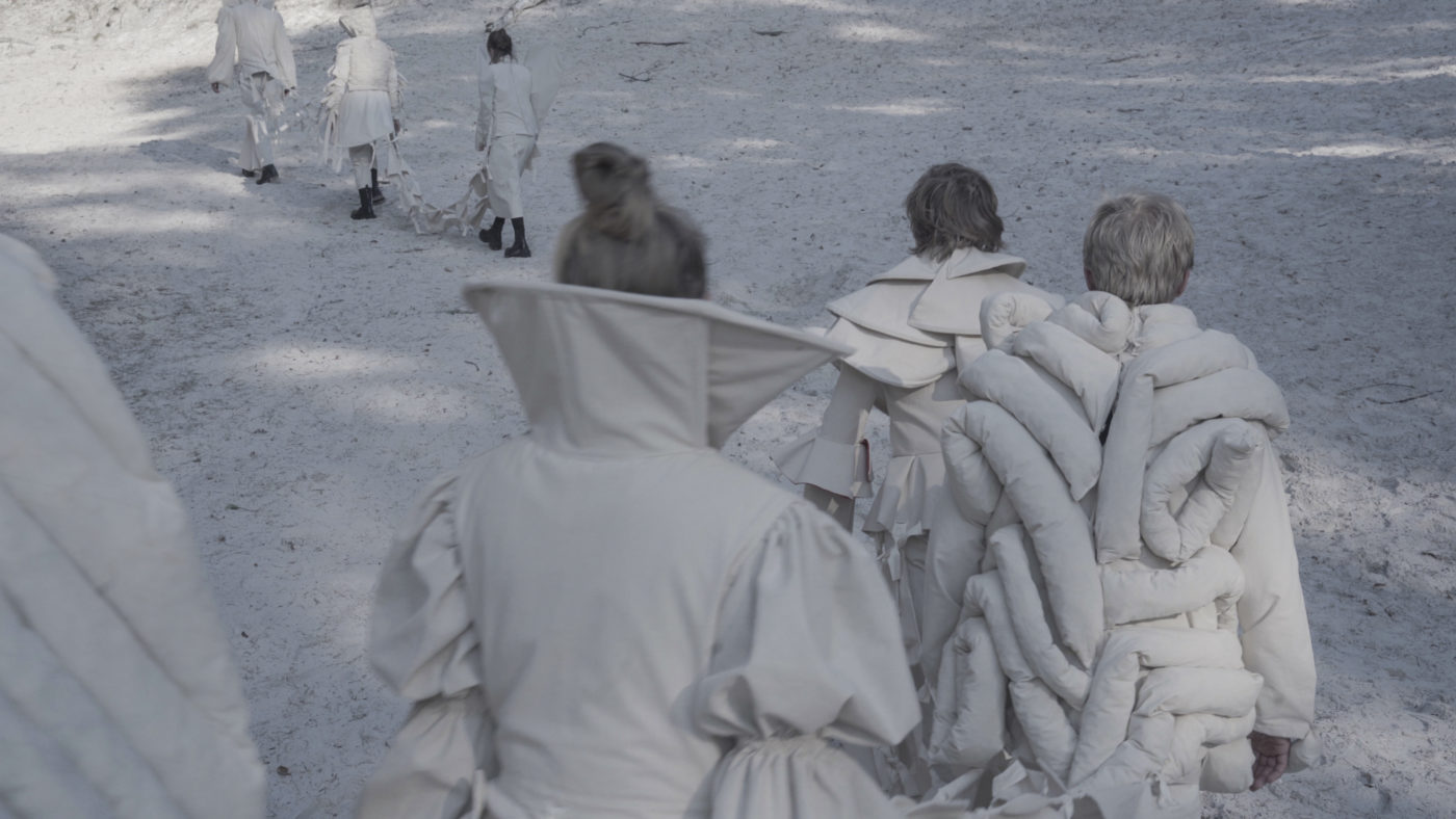 À cette occasion, Nefeli Papadimouli propose une performance inédite dans laquelle des interprètes sont habillés de ses œuvres-costumes. Au cours d’une parade à la fois poétique et hors du temps, ils déambuleront au sein de l’architecture unique du Frac.