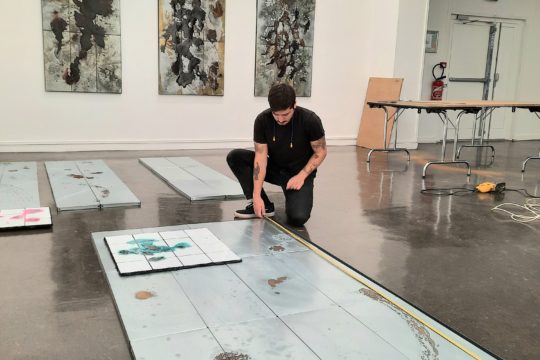 Au sortir de l’école, sa pratique s’engage dans une démarche expérimentale de collaborations, invitant des artistes à intervenir sur ses toiles ou à tenter des formes de co-création. Son intérêt pour le collectif se précise ainsi que la nécessité de développer la solidarité avec ses pairs. En 2015, invité à la Biennale de Mulhouse, il prend l’initiative d’inviter à son tour trois artistes. Depuis, chaque exposition met au défi la question du collectif, les procédures d’inclusion, de délégation, de court-circuit et de mises en abyme.