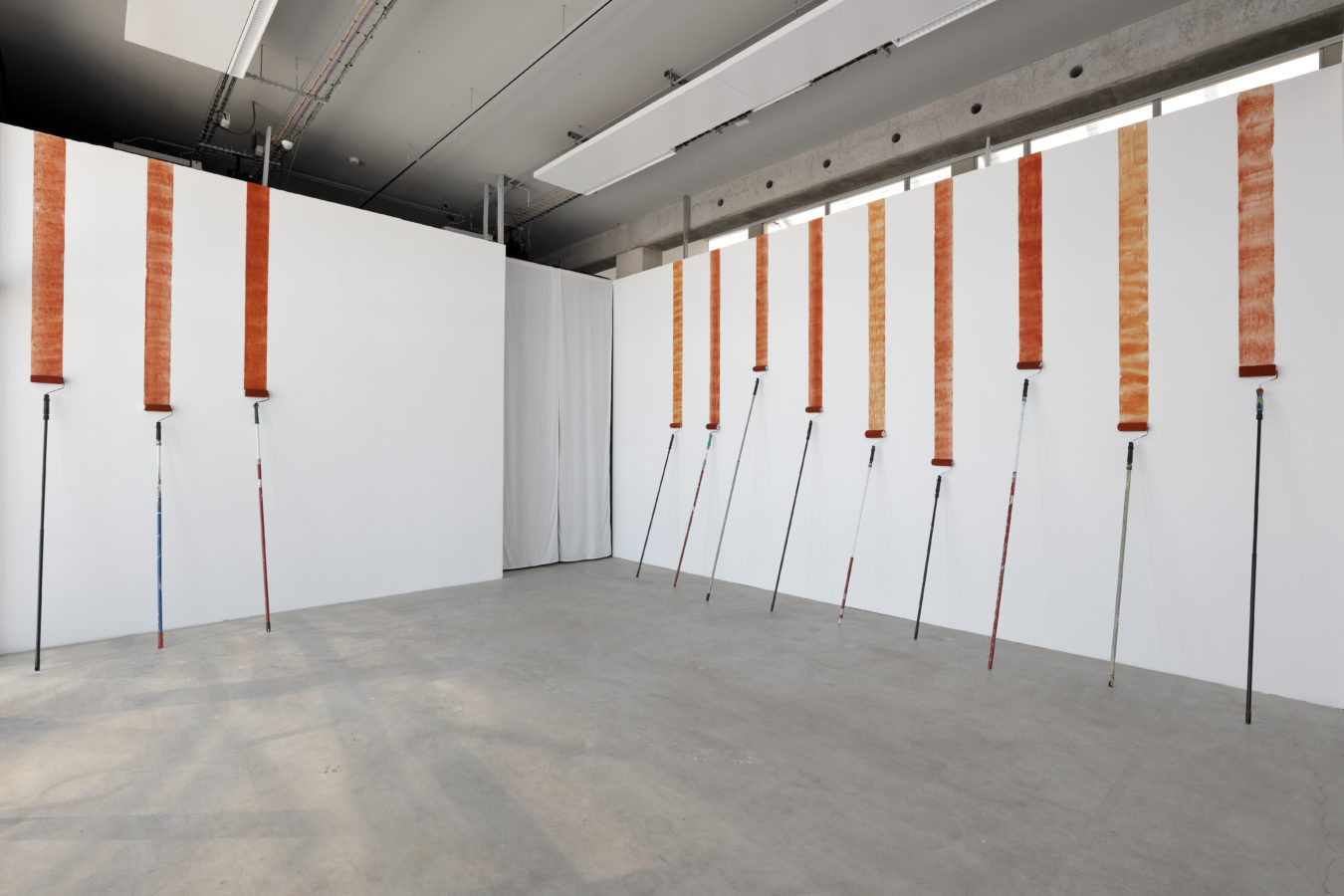 Des appareils électroportatifs s’animent soudainement, un ballet circulaire de chaises à roulettes imprime ses marques au sol tandis que des seaux de béton renversés figent l’accident d’une chaine de travail à l’arrêt. Ces objets, choisis pour leur caractère archétypique, témoignent des mouvements profonds qui transforment nos sociétés : la bétonisation des villes, la tertiarisation de l’économie ou encore l’épuisement des ressources. Toutefois, ils ne se muent pas en symboles. Leur simple présence suffit à projeter des représentations alternatives du travail – de ses espaces, de ses rythmes et de ses mythes.