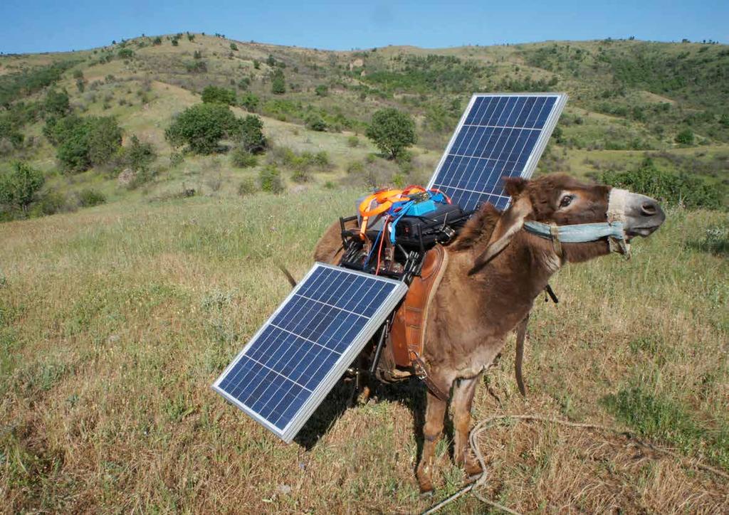 - Bât solaire, 2013, bât – batterie – convertisseur – Périphérique, socle béton, support métallique, 170 x 180 x 80 cm