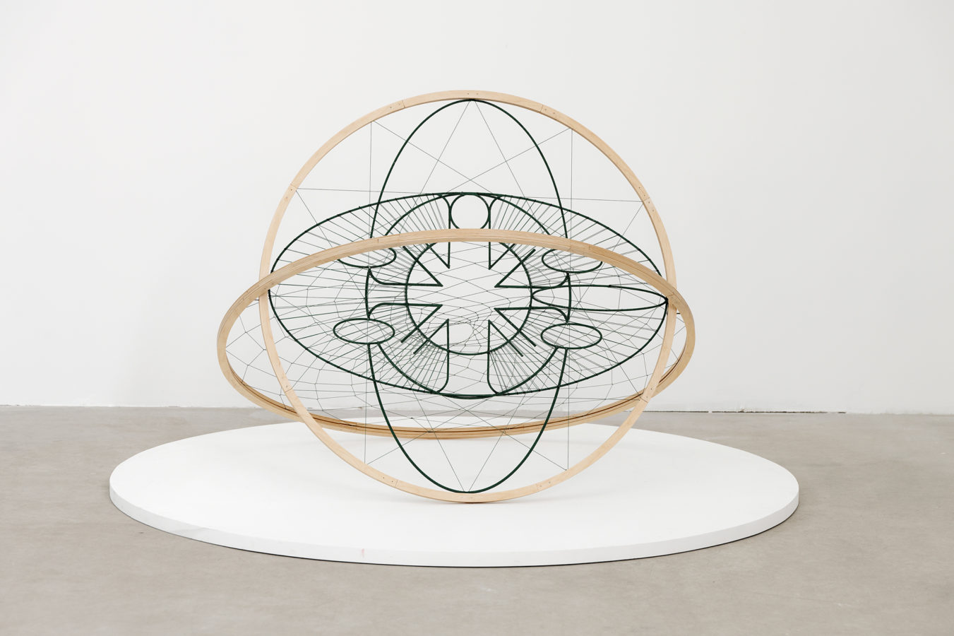- JUNG CATCHER II, 2019, contreplaqué de bouleau, acier, corde en coton, 360 x 400 x 400 cm